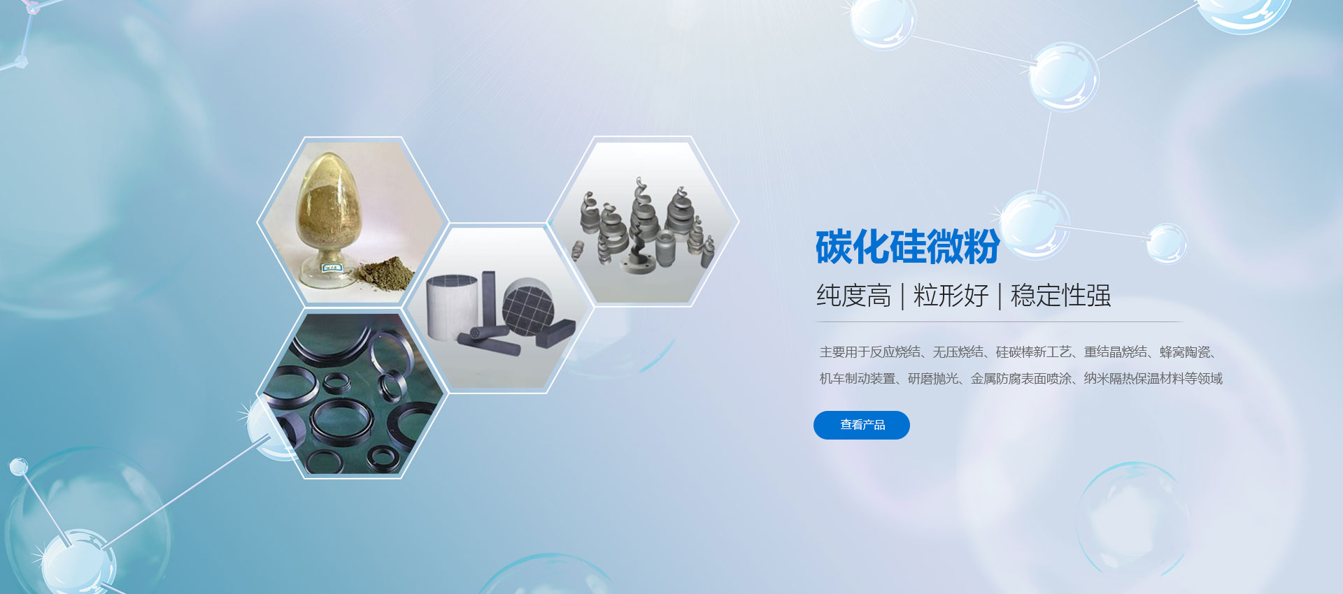 濰坊凱華碳化硅微粉有限公司成立于2002年,國家高新技術(shù)企業(yè),公司占地40畝,標(biāo)準(zhǔn)廠房19000平方,辦公樓、研發(fā)2000平方,年生產(chǎn)能力3萬噸。一直從事陶瓷級(jí)微粉的生產(chǎn)銷售,所生產(chǎn)的微粉具有純度高、粒形好、穩(wěn)定性強(qiáng)等特點(diǎn),主要用于反應(yīng)燒結(jié)、無壓燒結(jié)、硅碳棒新工藝、汽車尾氣處理(DPF)、納米隔熱保溫、機(jī)車制動(dòng)、防腐涂料、研磨拋光、橡膠樹脂等領(lǐng)域。標(biāo)準(zhǔn)產(chǎn)品有:F240、F1200、W40、W28、W20、W14、W10、W7、W5、W3.5、W2.5、W2、W1.5、W1、W0.5、D3E、5S、100F及整形高密度系列綠碳化硅微粉,廣泛應(yīng)用于燒結(jié)、防腐、研磨拋光、涂腐等廣大領(lǐng)域。